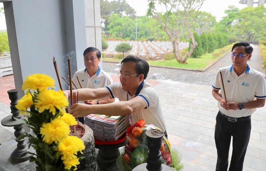 Các đại biểu dâng hương tại Nghĩa trang liệt sĩ Vĩnh Linh