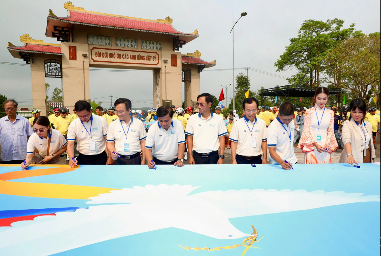 Tại Lễ khai mạc, các đại biểu đã thực hiện ký tên lưu niệm lên lá cờ của Ban Tổ chức Ngày hội Đạp xe Vì Hòa bình với chủ đề: “Chung tay kiến tạo hòa bình”. Lá cờ Lễ hội Vì Hòa bình với những họa tiết, hình tượng chủ đạo là chim bồ câu ngậm bông lúa thể hiện khát vọng hòa bình, ấm no và hạnh phúc của dân tộc Việt Nam.