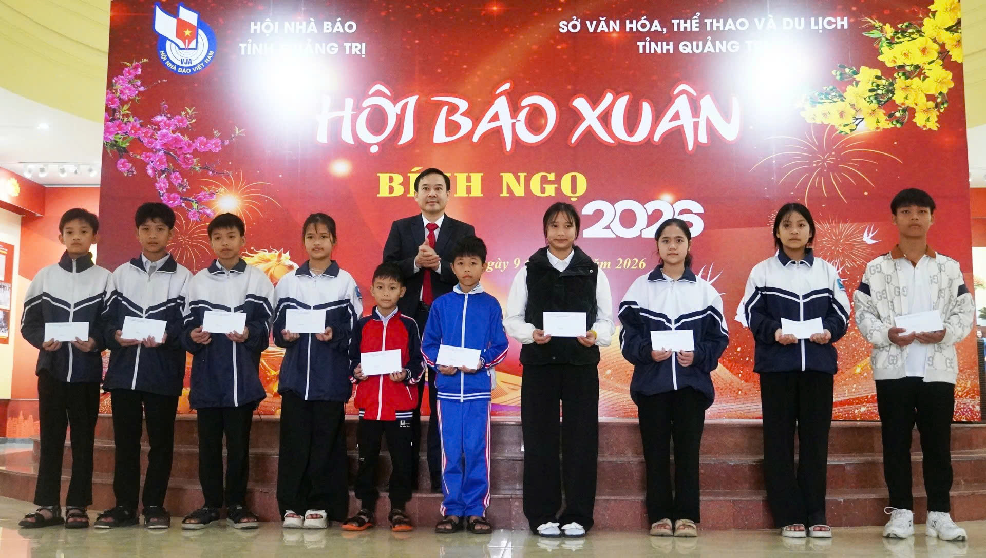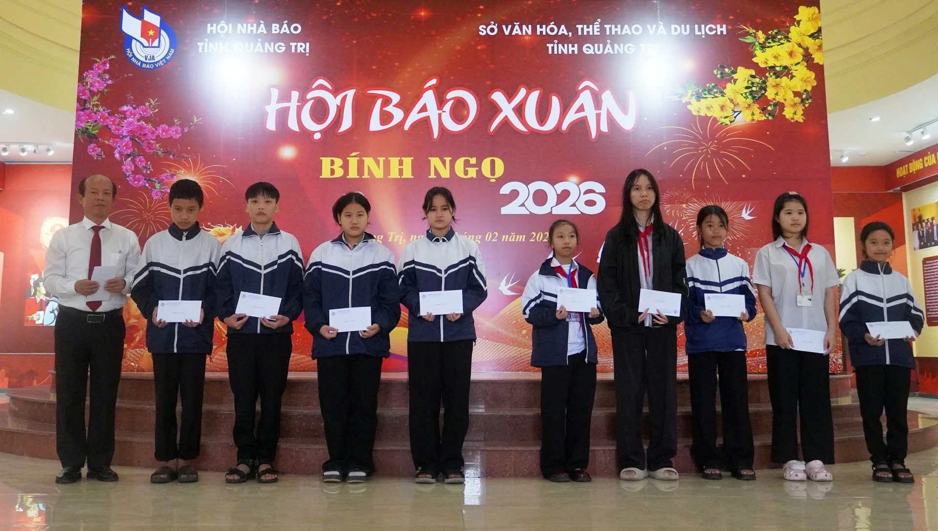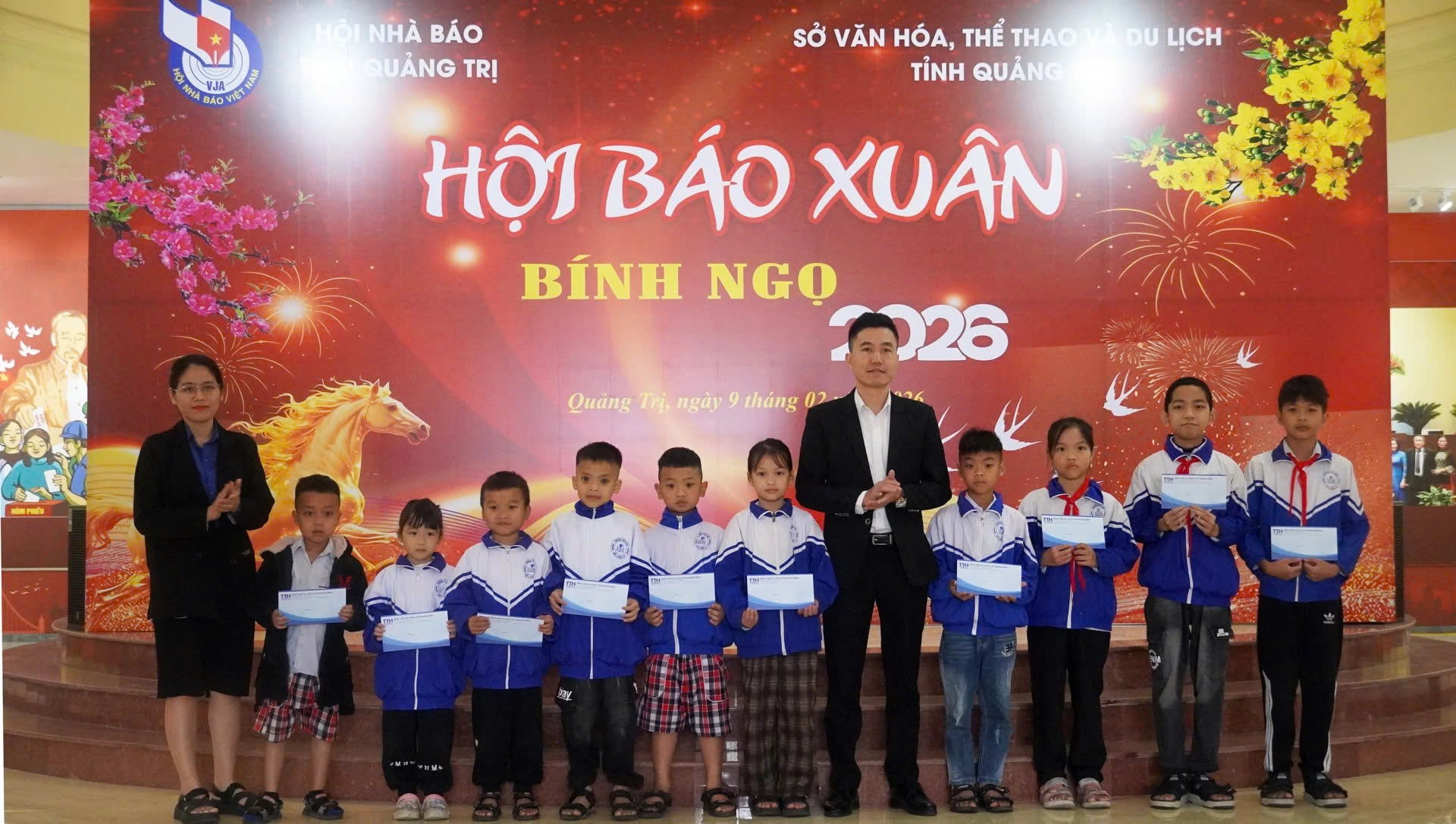 Sáng 9/2, tại Bảo tàng Quảng Trị, Hội Nhà báo tỉnh phối hợp với Sở Văn hóa, Thể thao và Du lịch tổ chức Hội báo Xuân Bính Ngọ năm 2026 và trao quà hỗ trợ cho học sinh nghèo vượt khó. Đến dự có đồng chí Trần Vũ Khiêm Phó Bí thư Thường trực Tỉnh ủy, đồng chí Trần Ngọc Ánh Phó Trưởng Ban Tuyên giáo và Dân vận Tỉnh ủy, đại diện lãnh đạo các sở, ban, ngành, đoàn thể trong tỉnh, các đồng chí trong Ban Chấp hành Hội Nhà báo tỉnh, cùng đông đảo hội viên Hội Nhà báo tỉnh.