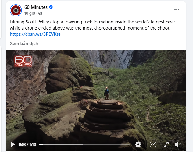 Phóng sự về hang Sơn Đoòng chính thức phát sóng trên chương trình truyền hình danh tiếng “60 Minutes”