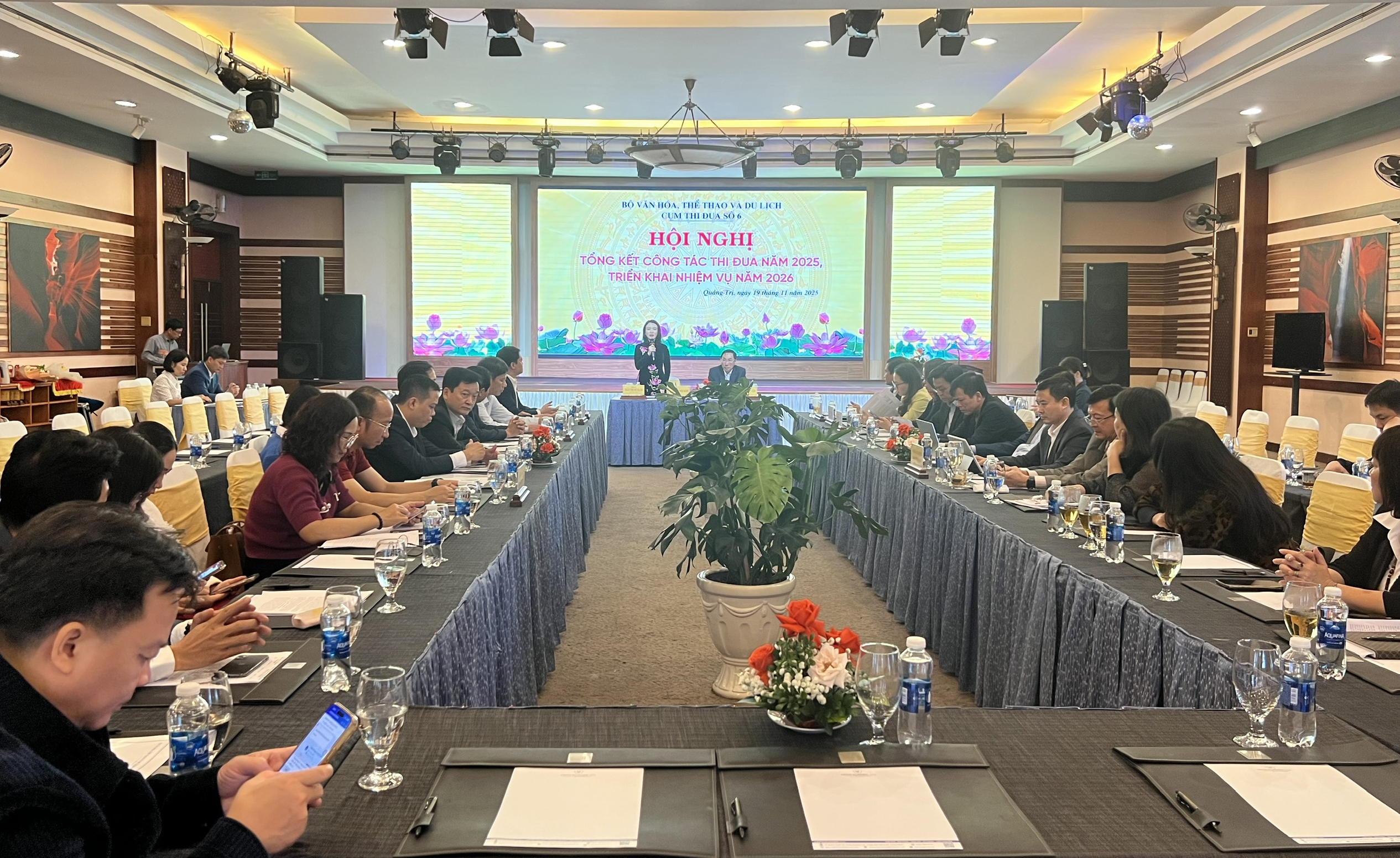 Thực hiện Kế hoạch số 1989/KH-CTĐ6 ngày 03/11/2025 của Cụm Thi đua số 6 về việc tổ chức Hội nghị tổng kết phong trào thi đua Cụm Thi đua số 6 năm 2025, ngày 19/11/2025, tại phường Đồng Hới, tỉnh Quảng Trị, Sở Văn hóa, Thể thao và Du lịch tỉnh Quảng Trị - Cụm trưởng Cụm Thi đua số 6 (gồm 04 tỉnh: Thanh Hóa, Nghệ An, Hà Tĩnh, Quảng Trị) đã tổ chức Hội nghị tổng kết công tác thi đua năm 2025 nhằm đánh giá kết quả nổi bật trong thực hiện nhiệm vụ chính trị, nhiệm vụ chuyên môn của các đơn vị trong Cụm Thi đua; đánh giá những tồn tại, hạn chế; đề ra phương hướng, nhiệm vụ và các giải pháp đẩy mạnh hiệu quả các phong trào thi đua năm 2026 và các năm tiếp theo.