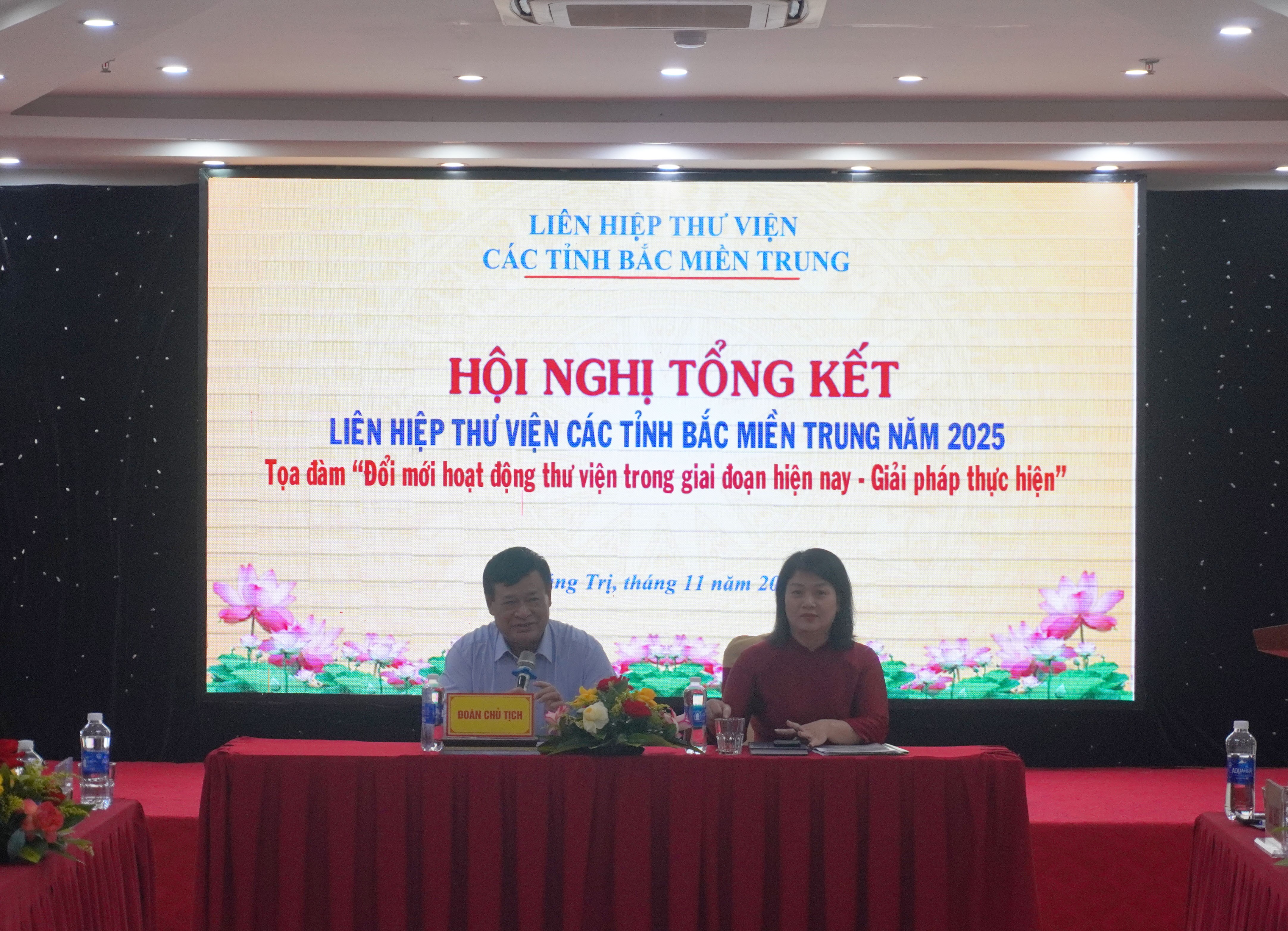 Sáng ngày 14/11/2025, tại phường Đồng Hới, tỉnh Quảng Trị, Liên hiệp Thư viện các tỉnh Bắc miền Trung tổ chức Hội nghị Tổng kết công tác năm 2025 và Tọa đàm “Đổi mới hoạt động thư viện trong giai đoạn hiện nay – Giải pháp thực hiện”. Tham dự Hội nghị có Bà Đoàn Quỳnh Dung -Phó cục trưởng Cục Văn hóa cơ sở, Gia đình và Thư viện; Ông Nguyễn Xuân Dũng - Giám đốc Thư viện Quốc gia Việt Nam; Ông Hoàng Thanh Hiến - Phó Giám đốc Sở Văn hóa, Thể thao và Du lịch tỉnh Quảng Trị, cùng đại diện lãnh đạo và viên chức 5 thư viện thành viên trong Liên hiệp.
