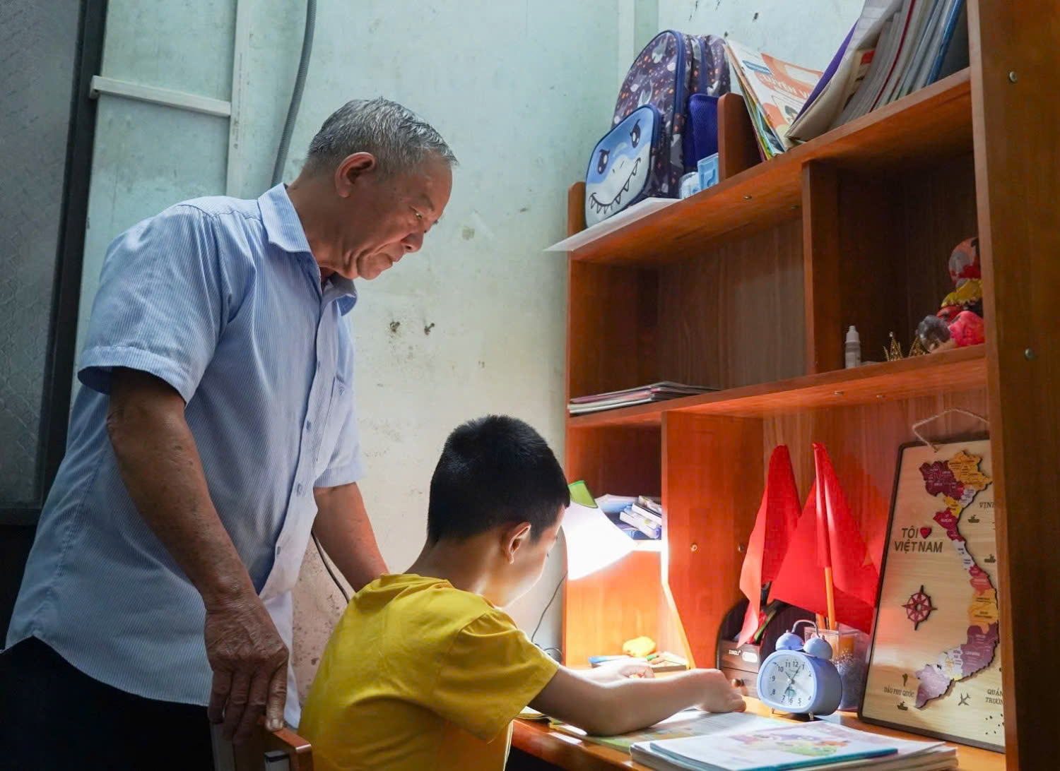 Ông Hoàng Văn Bình, ở thôn Xuân Lâm, xã Ba Lòng nhắc cháu vào học bài